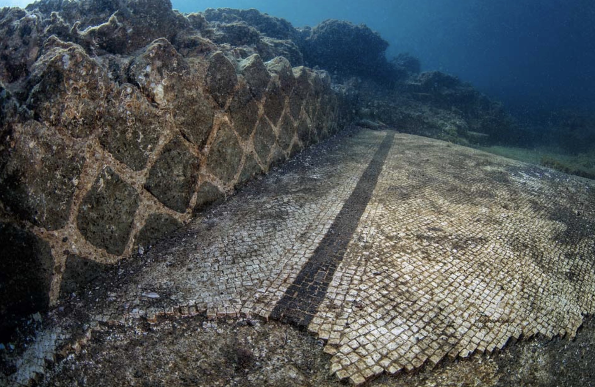 Scendendo verso il mare, il discorso diventa ancora più interessante. Una parte significativa dell’antica Baiae è oggi sotto il livello dell’acqua, a causa del bradisismo. Qui si trovano ville, pavimentazioni, muri e strutture portuali completamente immerse. Queste opere sono tra le testimonianze più dirette dell’uso della pozzolana. Il dato più evidente è questo: sono rimaste per secoli a contatto con acqua marina e, nonostante questo, sono ancora leggibili. Le murature mostrano il tipico nucleo in conglomerato romano, dove la matrice di calce e pozzolana lega gli aggregati. Non è una superficie rifinita, ma una struttura interna che si può osservare direttamente. È uno dei pochi casi in cui il comportamento del materiale si vede senza mediazioni.