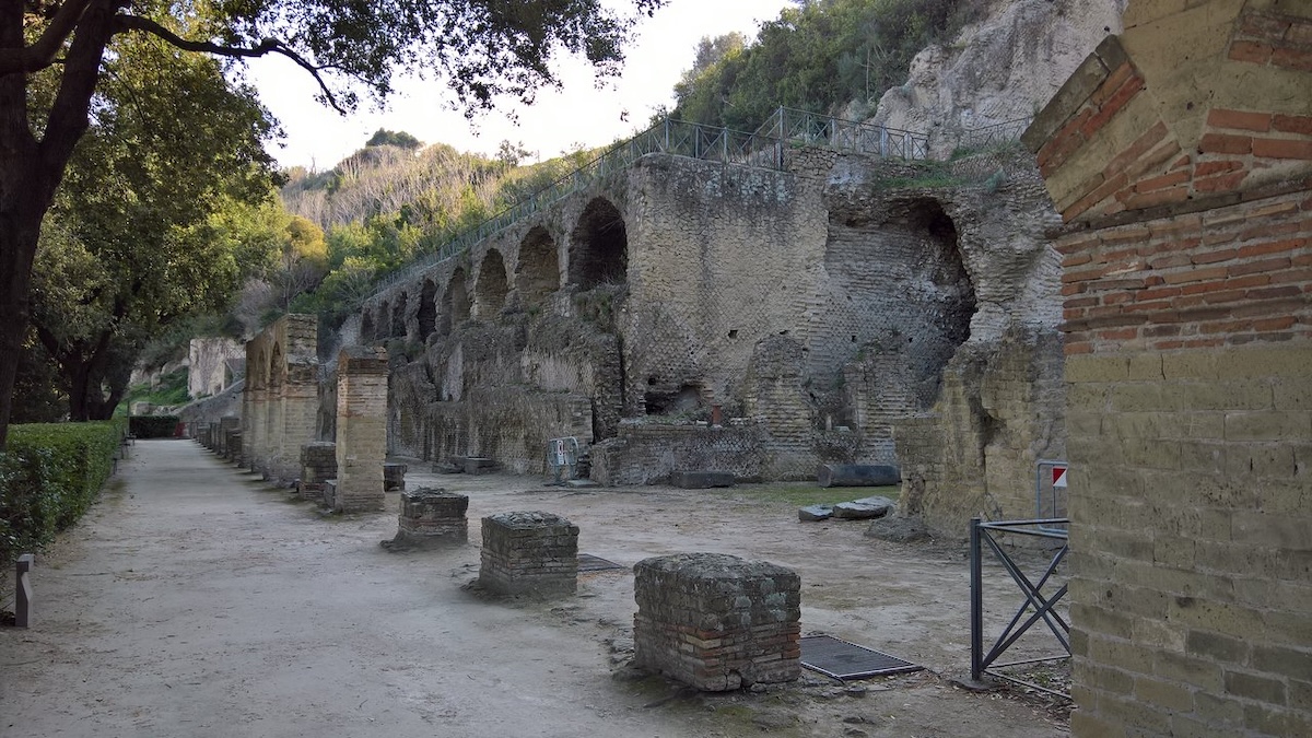 Il complesso termale, sviluppato tra I secolo a.C. e III secolo d.C., è un sistema articolato di ambienti costruiti su più livelli, adattati alla conformazione del terreno. Qui si trovano alcune delle strutture in opus caementicium più evidenti dell’area flegrea. Le grandi cupole come quella del cosiddetto Tempio di Mercurio, mostrano chiaramente l’uso del conglomerato romano. Non si tratta di murature tradizionali, ma di masse continue, realizzate con impasti di calce, pozzolana e aggregati locali. In un ambiente come questo, caratterizzato da vapore e umidità costante, la scelta del materiale non è secondaria. È proprio la presenza della pozzolana che permette alla struttura di mantenere coesione nel tempo.