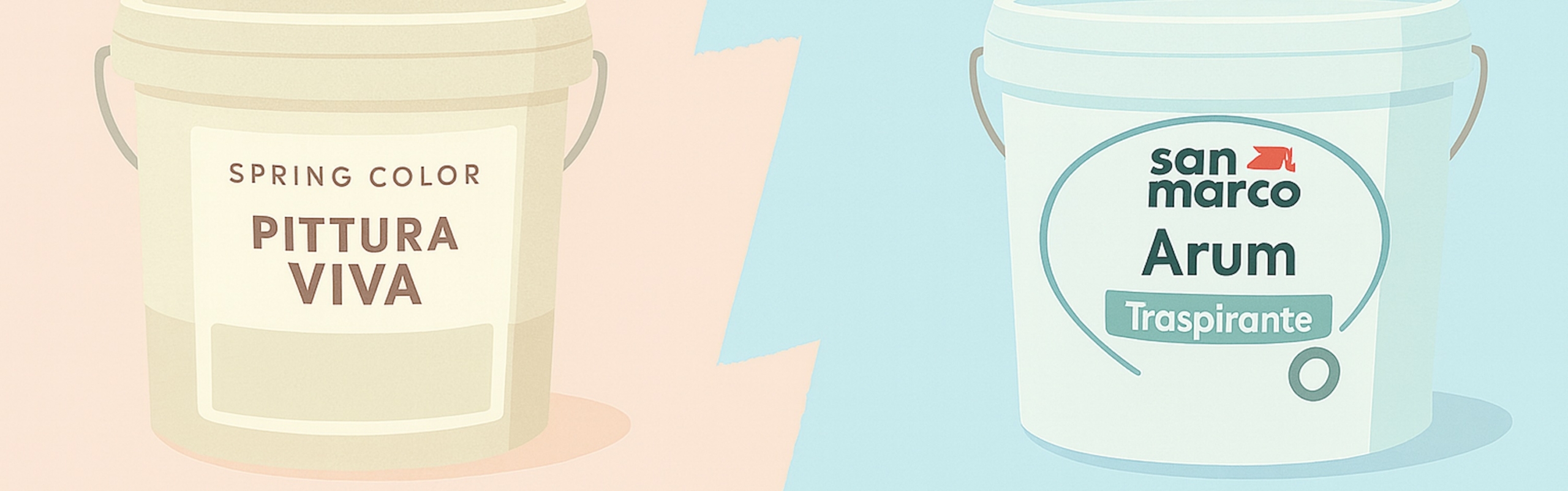 Il confronto tra Pittura Viva di Spring Color e Arum di San Marco mette in evidenza due prodotti che, pur avendo resa simile, costi paragonabili e destinazione d’uso sovrapponibile, appartengono a due mondi formulativi completamente diversi.