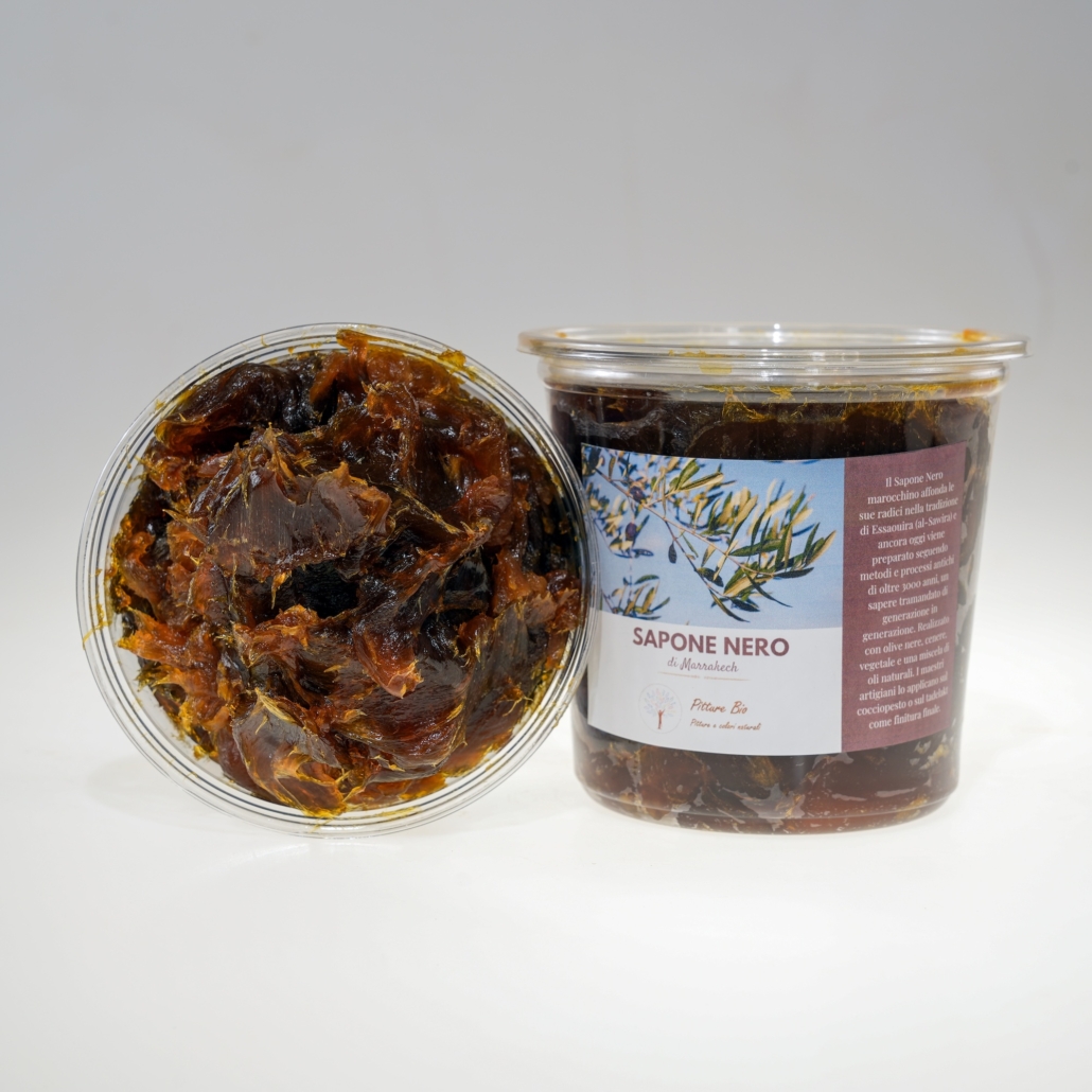 CAMPO DI UTILIZZO: Prodotto tradizionale della cultura marocchina, il sapone nero viene impiegato da secoli sia nell’edilizia artigianale come protettivo per superfici in calce, sia nella cosmesi rituale dei hammam come detergente ed esfoliante naturale per la pelle. La sua versatilità deriva dalla particolare composizione oleosa e dalla totale compatibilità con materiali e superfici naturali.