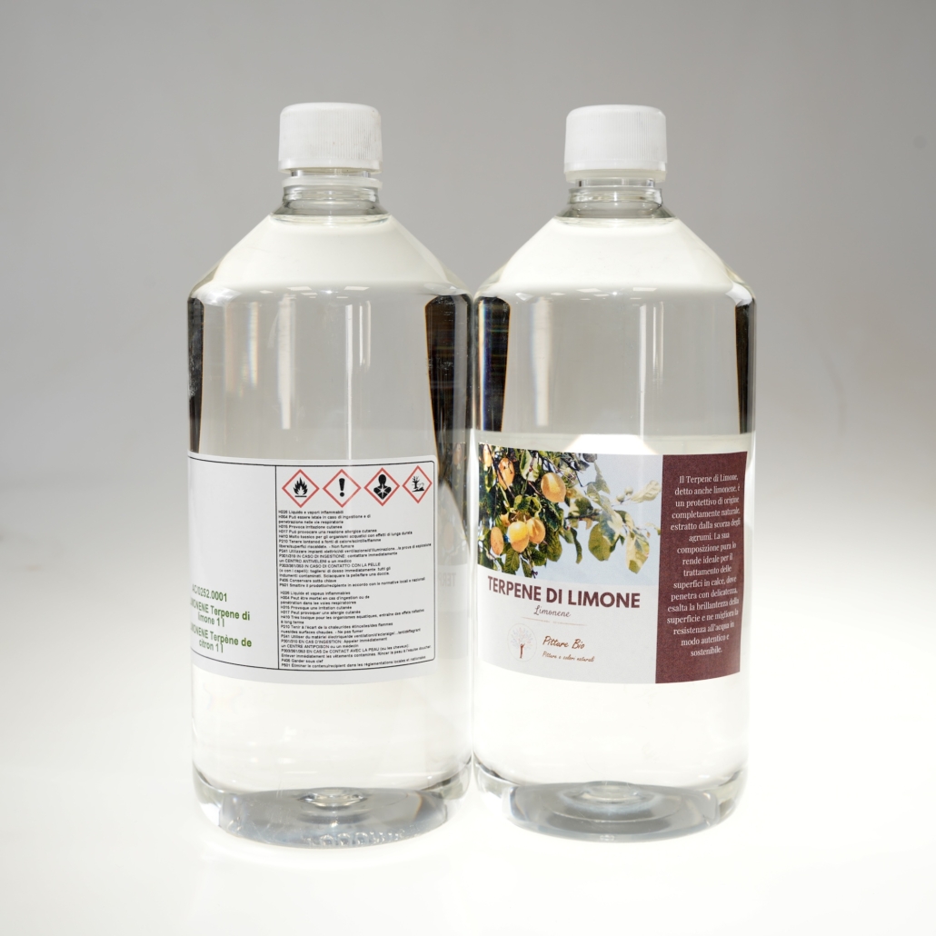 CAMPO DI UTILIZZO: Il terpene di limone viene utilizzato principalmente come supporto tecnico nelle lavorazioni con cere, oli e resine naturali, dove è necessario regolare viscosità, penetrazione o lavorabilità del prodotto. È particolarmente utile nella preparazione di cere artigianali per cocciopesto, tadelakt, stucchi e finiture a calce e legno, poiché consente di ottenere miscele più morbide e facilmente applicabili, migliorandone la stesura senza alterarne la natura. Trova inoltre impiego nel restauro e nella manutenzione delle superfici come detergente tecnico per rimuovere vecchi strati di cere, residui grassi o accumuli superficiali prima di nuovi trattamenti.