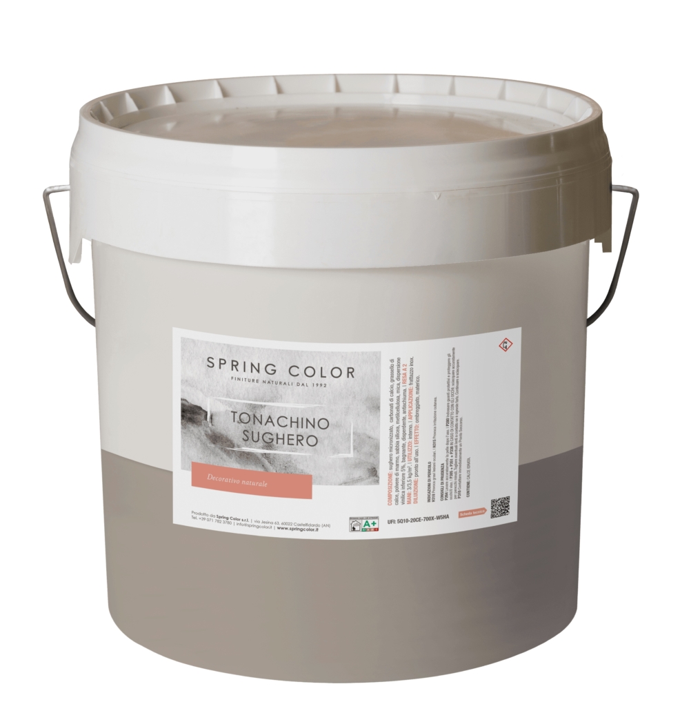 CARATTERISTICHE TECNICHE: Il Tonachino Sughero è un prodotto pronto all’uso, da applicare senza diluizione con frattazzo inox o plastica. La sua formulazione garantisce un’ottima adesione e un’elevata traspirabilità, mantenendo il naturale equilibrio del muro. La presenza del sughero micronizzato conferisce alla finitura un leggero potere termico, migliorando la sensazione di comfort e riducendo le dispersioni di calore. Il colore di base è ambrato naturale, personalizzabile con terre e pigmenti naturali.